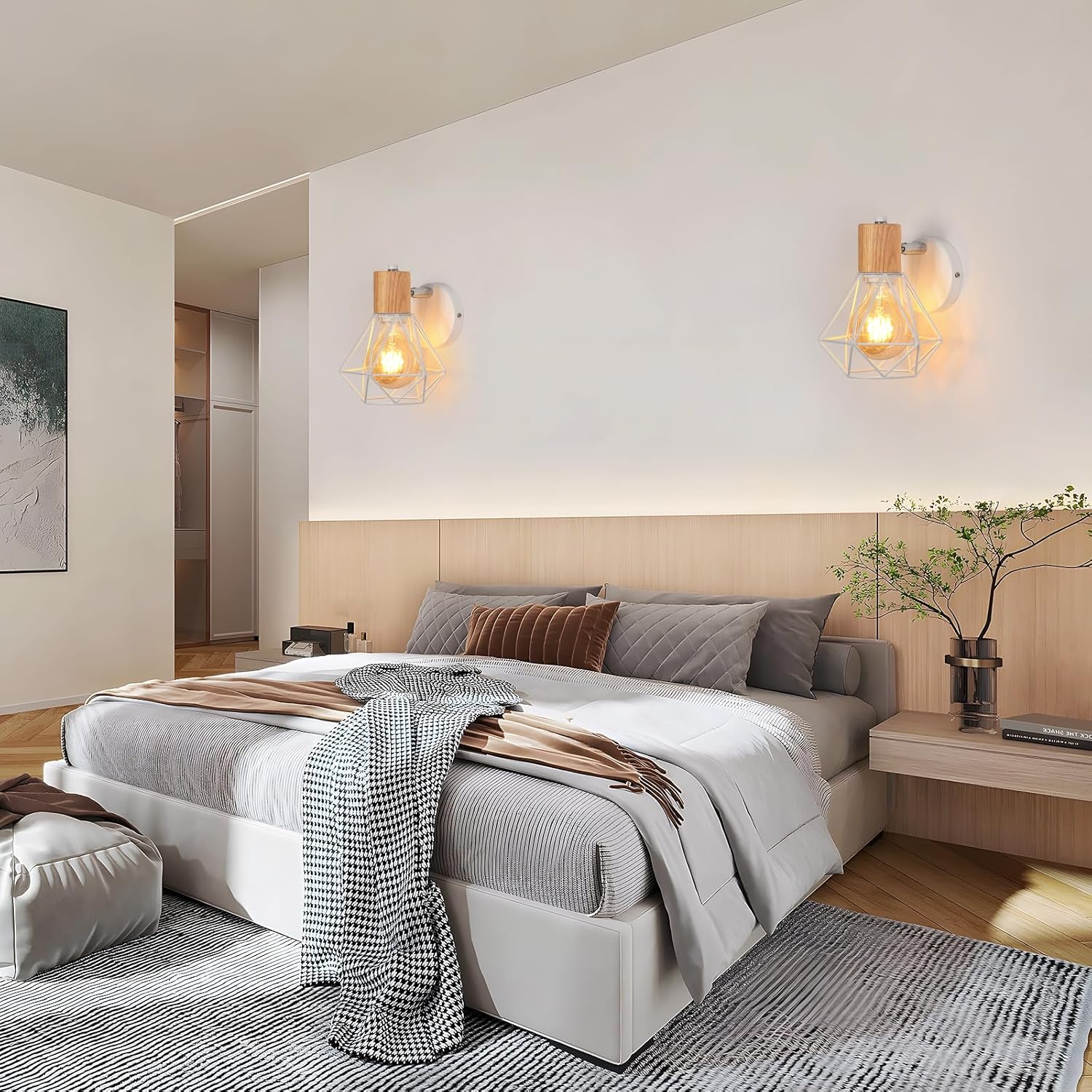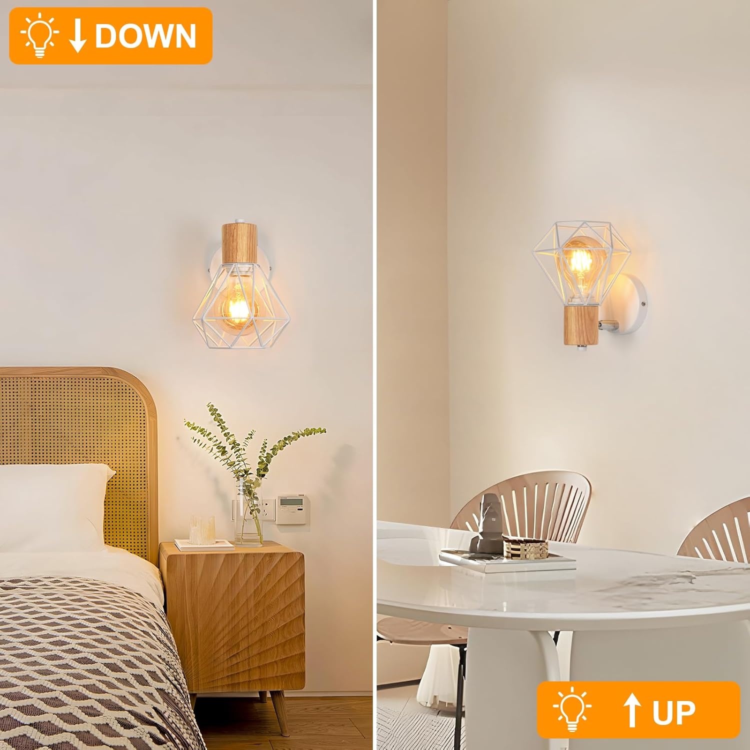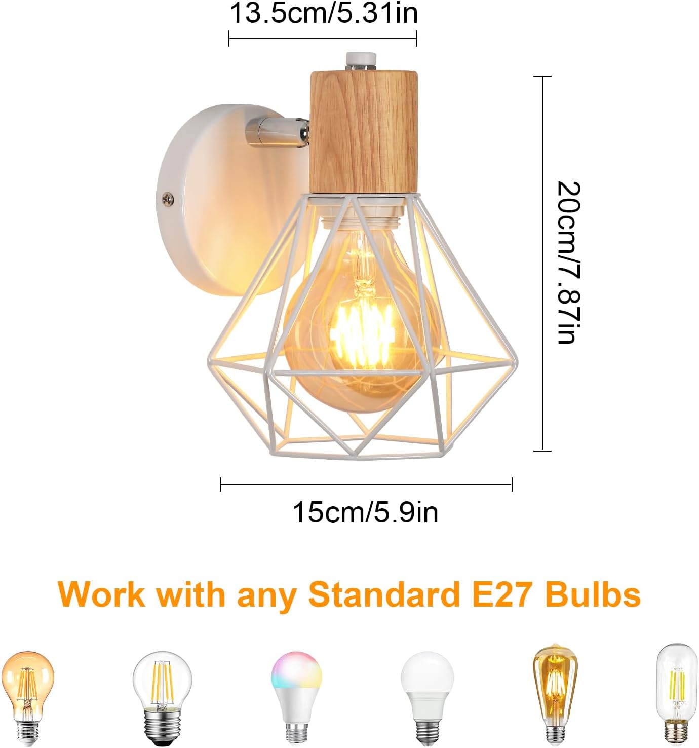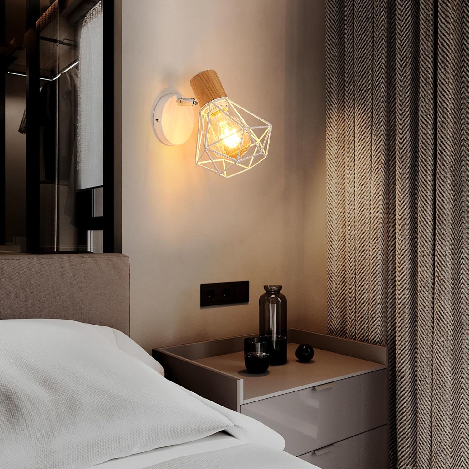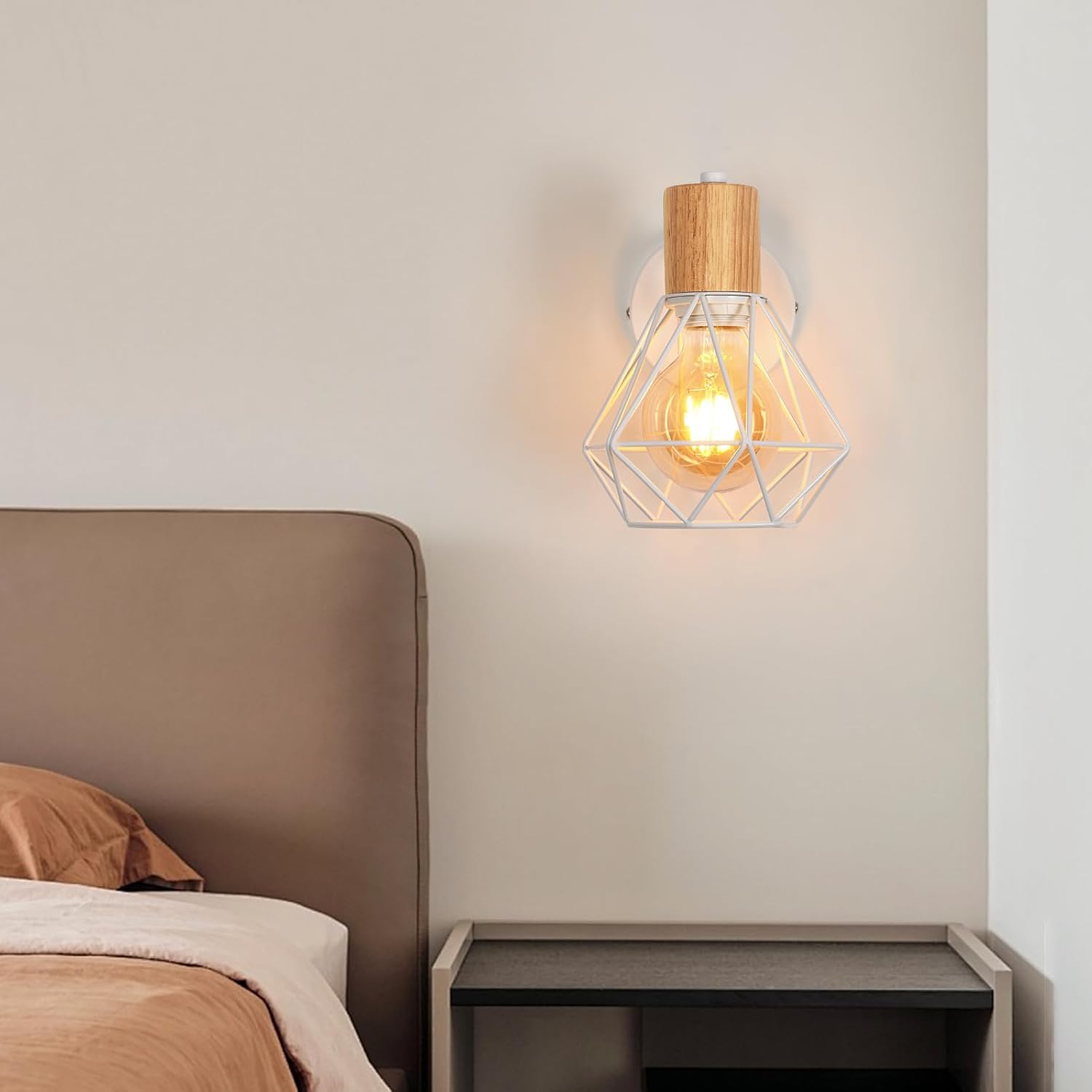 Cette applique murale au style rétro industriel présente un abat-jour unique en forme de cage blanche, combiné à un socle en bois naturel robuste. La lumière se diffuse harmonieusement à travers la structure ouverte, créant une ambiance chaleureuse et esthétique. Parfaite pour sublimer votre intérieur avec une touche décorative et fonctionnelle.